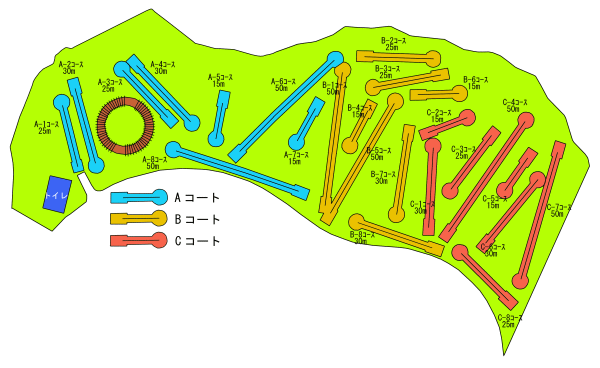 施設のご案内 コースレイアウト 公益社団法人日本グラウンドゴルフ協会認定コース 利用時間 9:00~17:00 休園日 12月27日~1月4日 利用料 1人1回 15歳以上の者 市内 300円 市外 450円 上記以外の者 (6歳未満の者を除く) 市内 100円 市外 150円 回数券 10回券 (11回) 市内 2,500円 市外 3,750円 20回券 (21回) 市内 4,000円 市外 6,000円 シーズン券 4月1日~11月30日 市内 6,000円 市外 9,000円